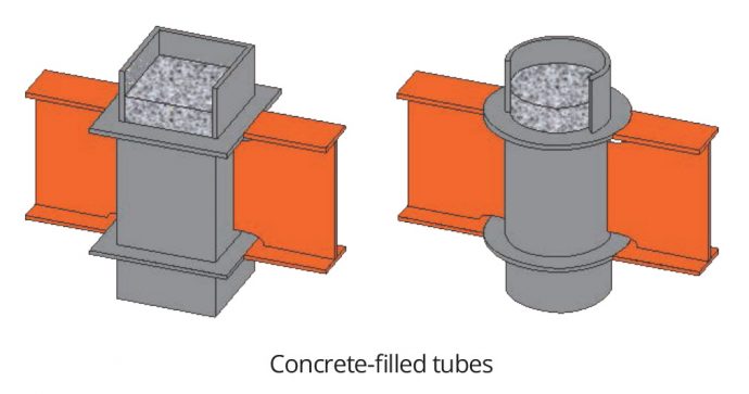 CFTs achieve higher seismic performance and fire resistance with the aid for the combined effects of steel and concrete.