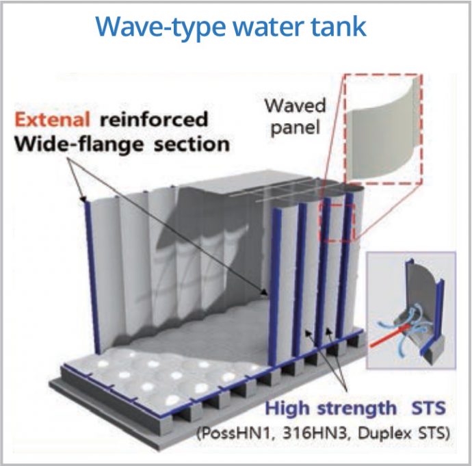 - The wave panel has the excellent water pressure distribution and reduces sloshing in the event of an earthquake.