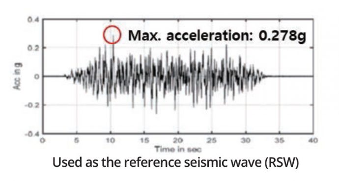 Earthquake simulation experiment using the shaking table. Applied by 2.5 times the reference seismic wave(RSW)(0.278g)