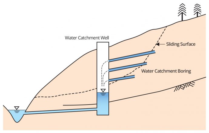 To control landslides by constructing a shaft with liner plates in the landslide area in order to collect and remove groundwater from the surrounding area