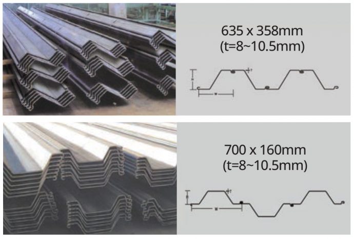 Manufactured by roll-forming of HR coils : Z-type & U-type Sheet Pile