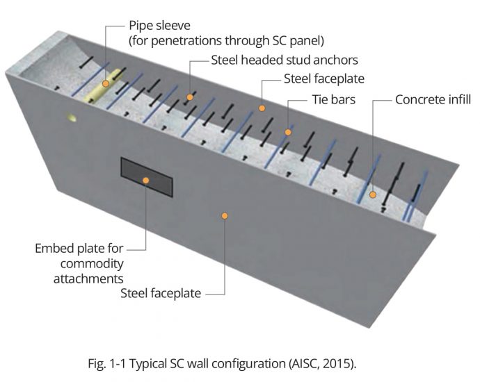 - Modular steel-plate construction consists of concrete walls that are sandwiched by two steel plates, which are attached to the concrete with steel anchors and tie bars.