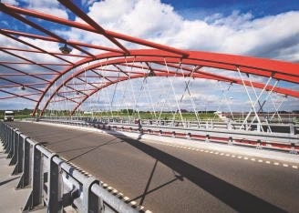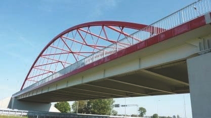 - Net-arch bridges with cold-bent hot-rolled sections for the arches allow for a slender and aesthetical bridge design.
