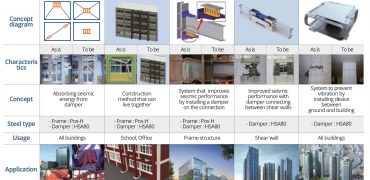 Various types of steel dampers are installed in the building using Low Yield Point steel (HSA80) to control damage to the main beam and column.Natural Hazard Prevention and Mitigation Solutions