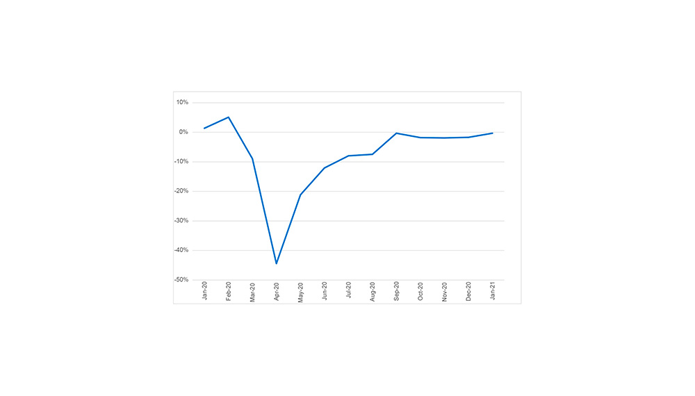 US | Private non-residential construction output fell -10% y-o-y in January but edged up 0.4% m-o-m and for the first time since June 2020.